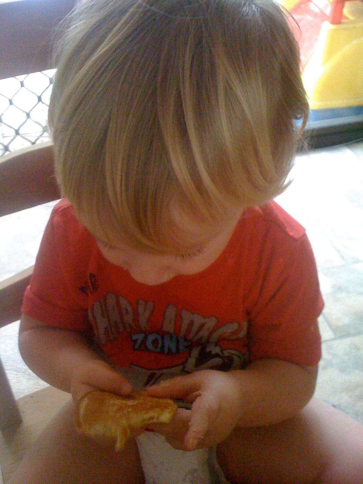 So, i decided to make pikelets with Harry yesterday. Our first venture into cooking together, i was a little unsure how this would go. He shook with excitement at the suggestion and eagerly hopped up onto the "big" chair to do some mixing. To my great suprise he actually followed my directions to "pour this in here" and "mix this together" without much drama. Though when my back was turned i did see him shove a whole handful of flour in his mouth! I even got out the big electric frypan to cook them just like my mum (doing them any other way didn't seem right!). I left Harry licking batter off the wooden spoon as i submerged the mixture in hot, sizzling butter. They were delicious! Harry and i sat at the table and nattered like two old ladies and munched and crunched the pikelets until they were all gone. It was a wonderful way to spend the afternoon together.